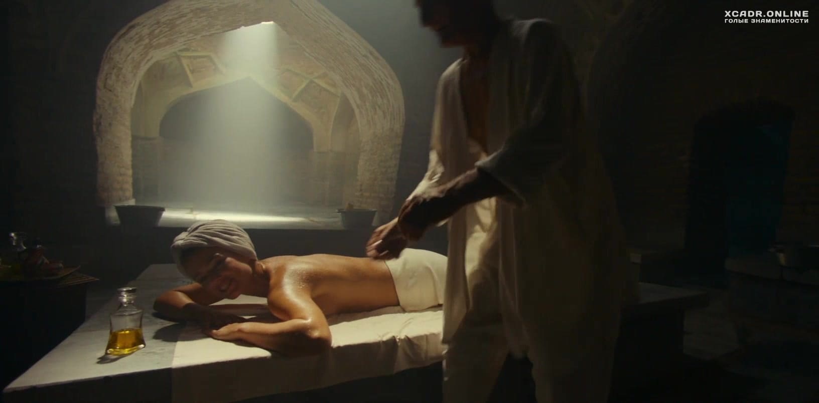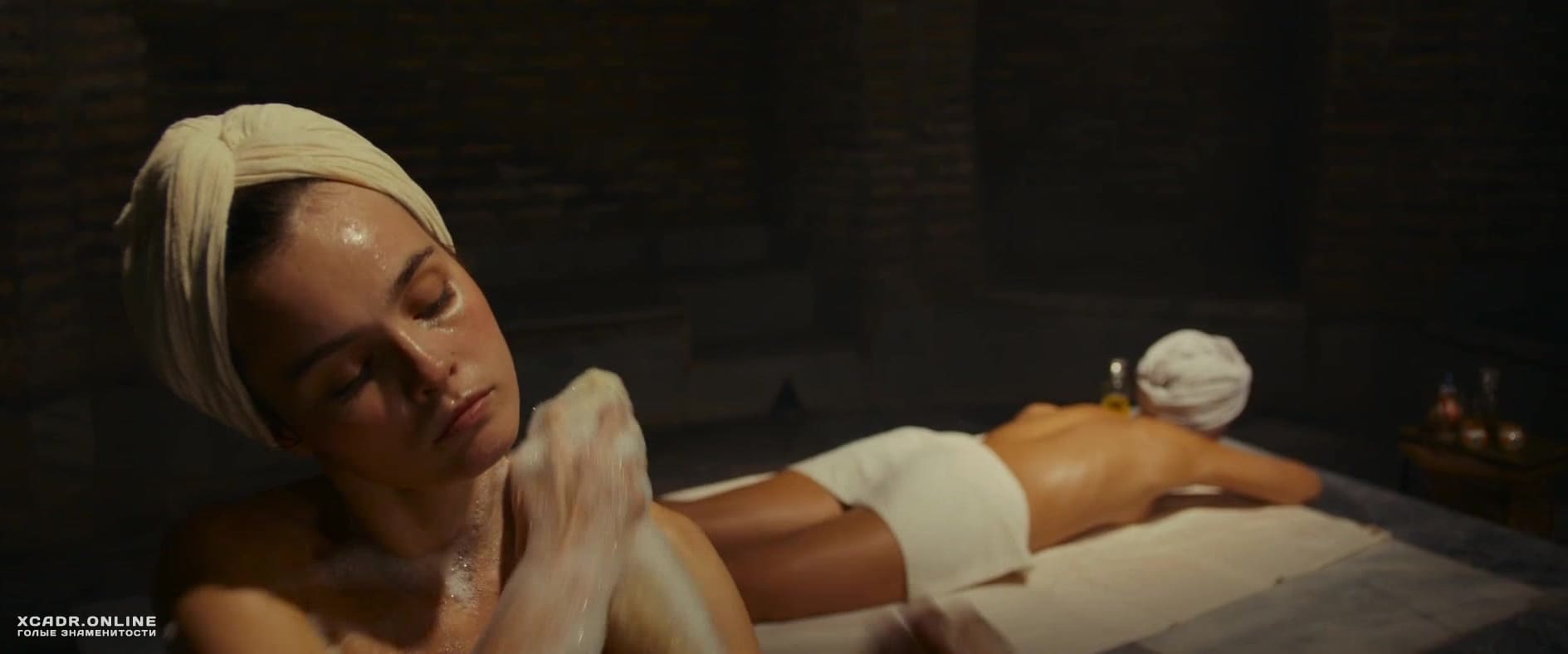 Обнаженное тело Ангелины Стречиной натирают для согревания