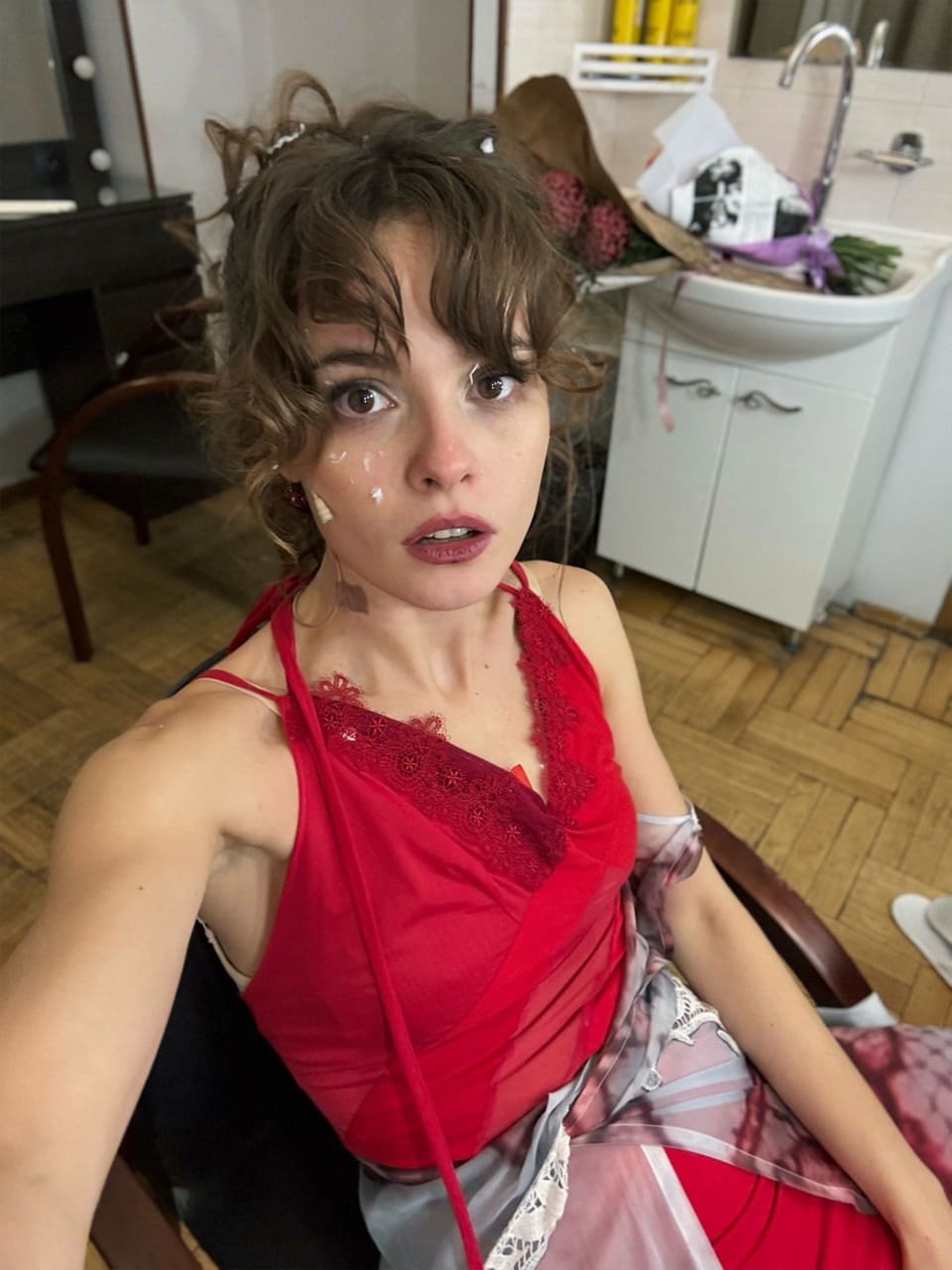 Ангелина Стречина в ночнушке